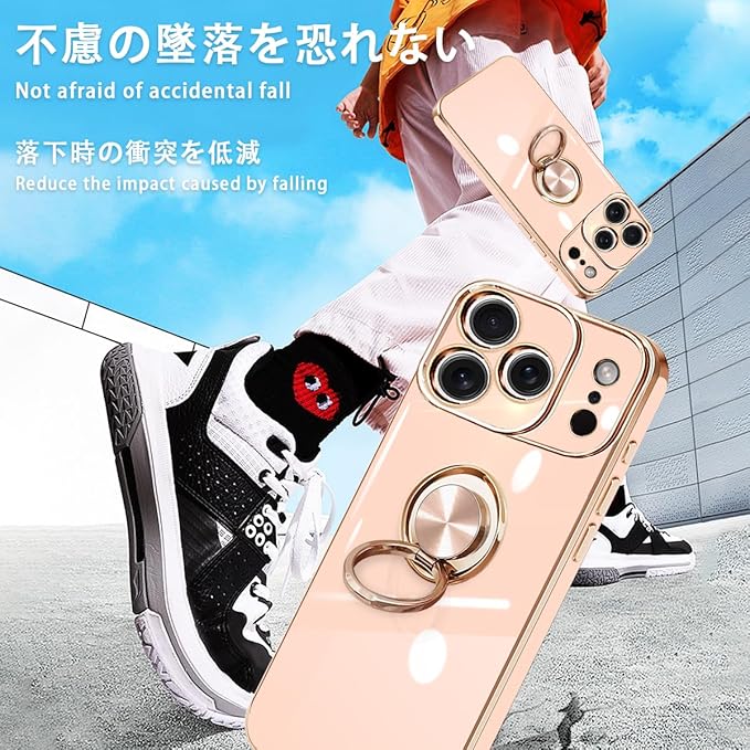 danliangqifei iPhone 17Pro 用 ケース リング 耐衝撃 360 回転 スタンド機能 車載ホルダー対応 カバー あいふおん17Proスマホケース 携帯ケース 保護カバー レンズ保護 ストラップホール付き(ピンク) | KAZESHOP