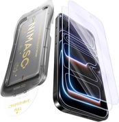 「2ステップでOK・自動除塵」NIMASO新型の自動除塵ガイド枠が登場!!!被せる、引っ張る、たった2ステップで初めての方でも簡単に貼り付けられます。いPhone17pro 保護フィルムが自然と吸着する構造になっており、静電気を利用して液晶画面の埃を除去します。フィルムの接着面が空気を逃がす構造となっているため、初めての方でも簡単に気泡や埃が入らずフィルムを貼り付けることが出来ます。貼付け時の失敗が大幅に軽減できることが特長です。