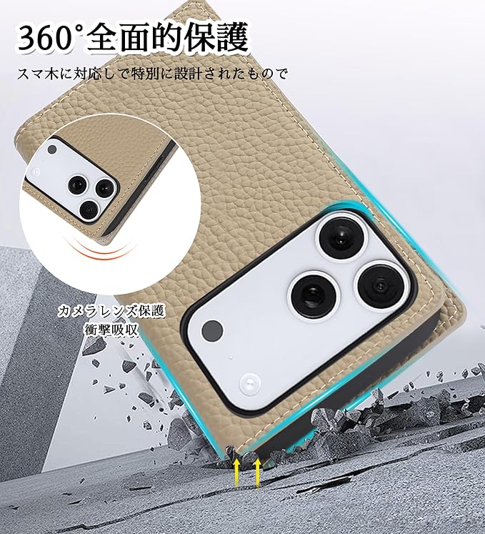 【耐衝撃】大切なスマホを守る安心の手帳型。内部は衝撃吸収性に優れたTPU素材を採用して、落下時の衝撃を効率よく吸収するようにケースの各コーナー内側が設計されています。手帳型ならではの全面保護機能でディスプレイはもちろん、背面もしっかりガードします。