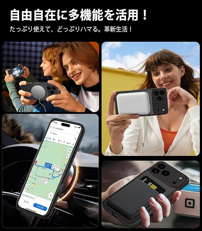 【MagSafe対応・車載ホルダー対応】ガッチリ吸着する事で充電器との距離を短縮、エネルギー無損失の急速ワイヤレス充電できる。マグネット式車載ホルダーに対応し。マグネット対応金属板が付き、車載ホルダー吸着することもできます、運転中に携帯電話のナビゲーションなどの機能をより便利に使用することができます。(車載ホルダーは付属しませんので、ご注意ください。)