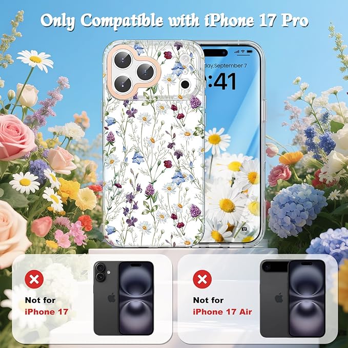MILPROX iPhone 17 Pro 花柄ケース おしゃれな花柄デザイン 透明マット背面に施された細かい花柄が、スマホの美しさを引き立てつつ可愛らしさをプラス 快適な使用感 サラサラマット加工で指紋/手垢防止!黄変せず長く美しく使える高耐久素材 しっかり保護 360 全周保護+衝撃吸収設計で落下・衝突から守る