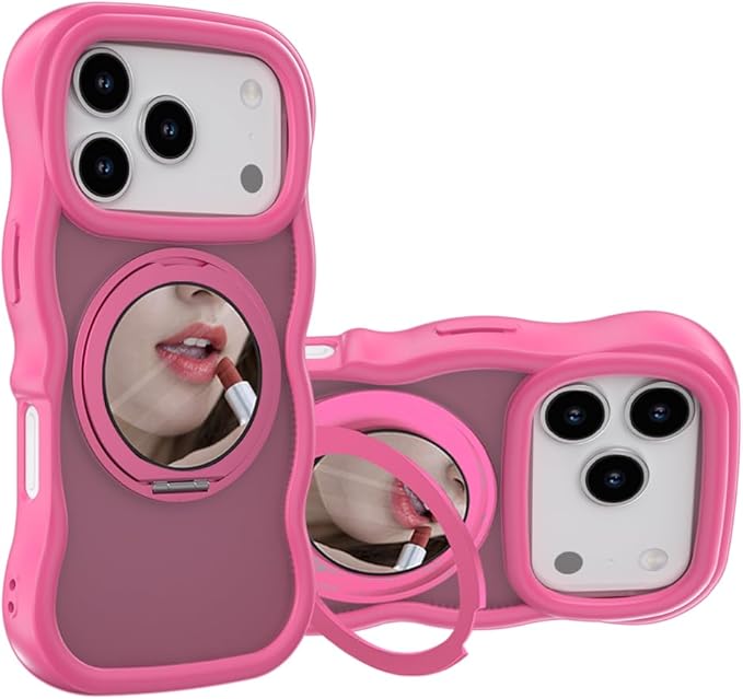 Kanyaku 互換品 ケース Iphone17Pro Max用の ケース magsafe対応 超強磁力 TPU 韓国 可愛い ウェーブ ソフト 滑り止め 鏡付き 耐衝撃 半透明 マット感 おしゃれ 360 回転スタンド 縦横両対応 スマホケース iphone 17Pro Max 用 マグセーフ リング マグネット搭載 (360JZ-17pm-th) | KAZESHOP