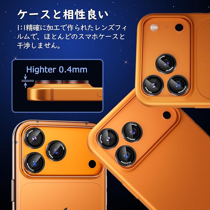 【スマホケースと干渉なし】iPhone 17 Pro Max/iPhone 17 プロのレンズにカスタム設計されたレンズフィルムは、引っかかる感がなく、ほとんどのケースに干渉せず装着可能。★★★品質保証付き:当店でご購入の製品は6ヶ月間の保証サービスをご提供しております。「初期不良」、「違う商品が届いた」、「ヒビ入り/割れた」など場合、弊社にご連絡いただければ迅速に対応いたします。
