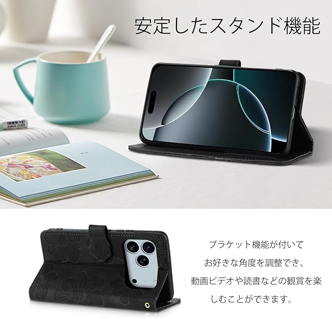 CASAFUNY カバー 用の iPhone 17 Pro ケース 手帳型 人気 カバー アイフォン 17 プロ ケース 手帳型 耐衝撃 本革レザー スマホケース iphone17プロケース かわいい 美しい桜の柄 携帯ケース おしゃれ カード収納 マグネット式 スタンド機能(6.9インチ)くろい | KAZESHOP