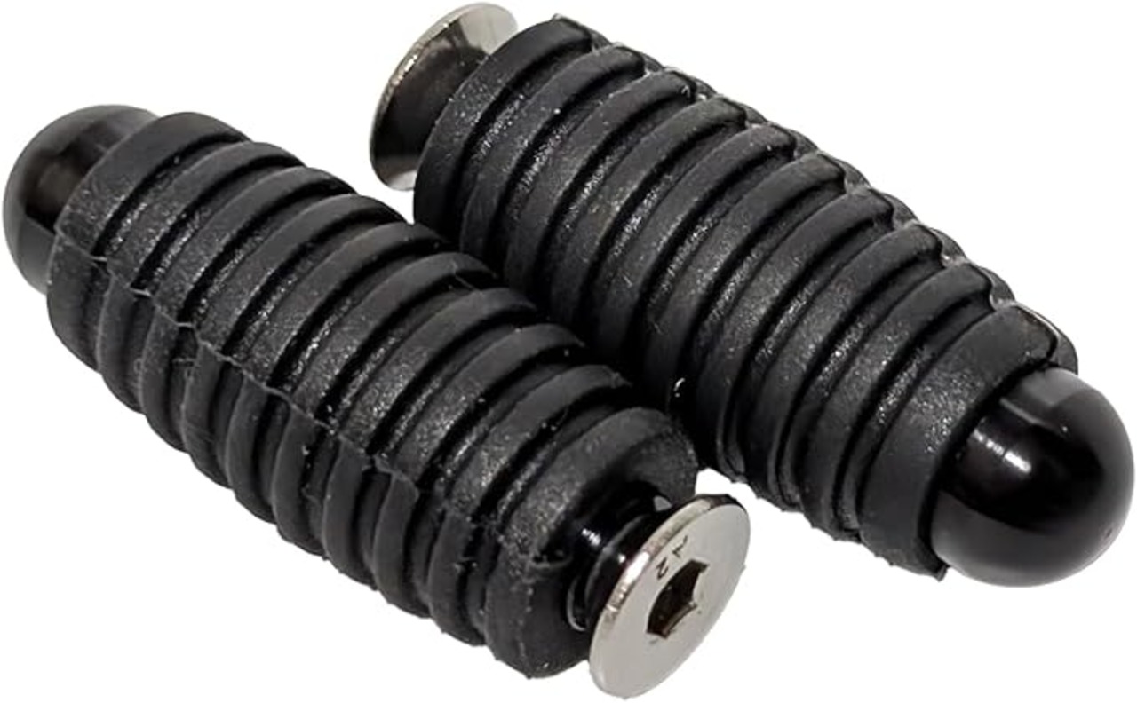 【特徴】シフトペグやブレーキペグ、フットペダルなどにご利用可能。5mmのボルトを使用していますので、サイズさえ合えばヤマハ カワサキ ホンダ スズキなど様々なバイクやオートバイでご利用いただける、汎用性の高いフットペグとなります。補修などに便利な1個での販売と、お得な2個セットも販売しております。