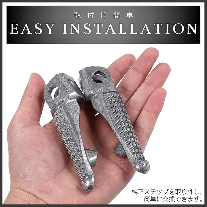 【滑り止めデザイン】ステップ表面には凹凸のある滑り止め加工が施されており、雨天時や悪路でもしっかりとグリップを確保。これにより、ライダーの安全性が向上し、安心して走行を楽しむこと
