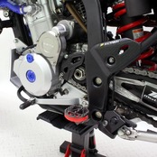 フルバンク状態でのロードクリアランス確保の為、ペグ長の見直しやハイステップ化等、モタード走行専用に設計。
