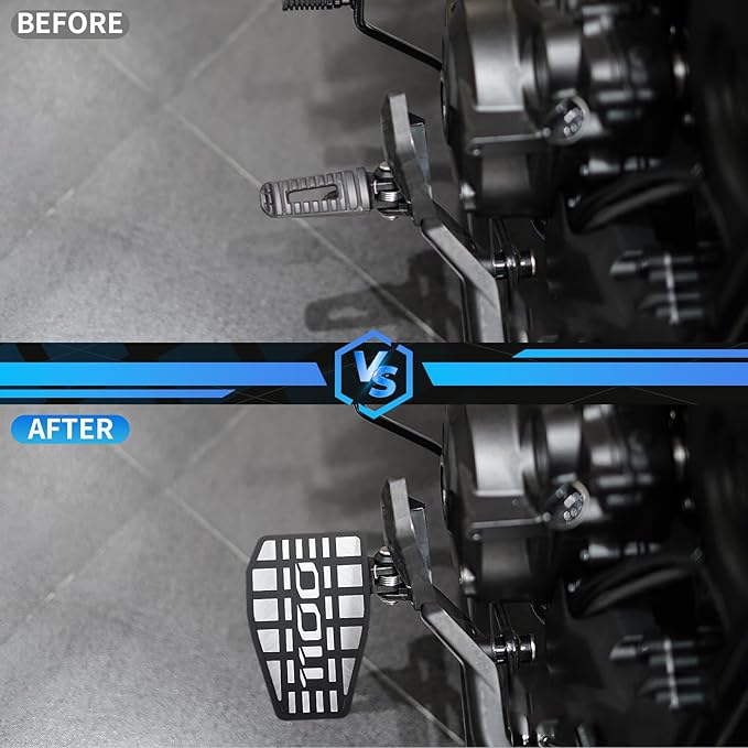 高性能:✅幅広で快適なデザイン、長くなったフットレスト面により、より安定したペダリングサポートが提供され、長距離走行時の足の疲労が軽減され、乗り心地が向上します。✅表面にレーザー刻印された滑り止めパターンにより、雨の日でも滑らず、安全なコントロールを確保します。✅フットレストエクステンダーは、バイクに瞬時に彩りを添えます