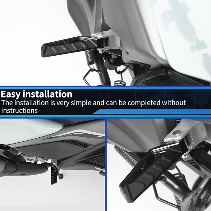" 【簡単取り付け】 ドリル加工や改造不要!バイク側の既存ブラケットにフットレストの穴を合わせるだけで、追加作業なしで数分で完了。"