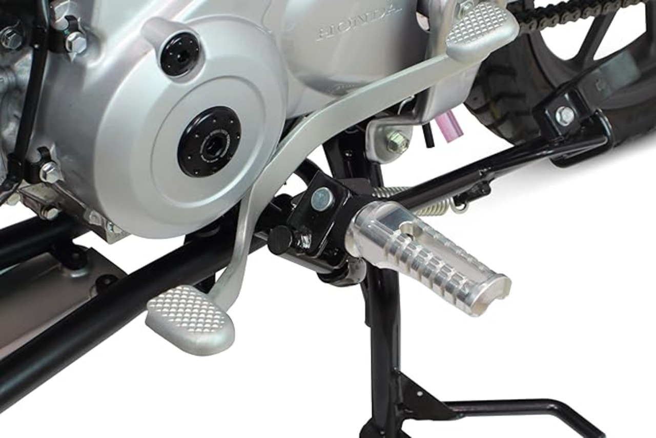 ライディングシューズの収まる幅を確保しながら大胆に削り込んだステップバーと、上下の変化量を増やし過ぎないオフセットポジション調整が可能です。