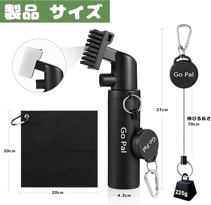 Go Pal GG02 ゴルフクラブクリーナー 145ml ゴルフクラブ 手入れ ゴルフクラブ清潔用ブラシ 伸びるリールとタオル付き 携帯便利 ツールクリーナー
