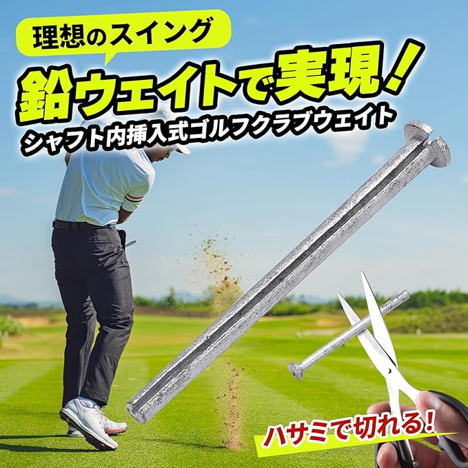 【商品概要】この鉛製ゴルフクラブウェイトは、ゴルフクラブのバランスを手軽に調整するためのアイテムです。シャフト内に簡単に挿入でき、鉛の特性を活かして重量の微調整が可能です。初心者からプロまで、あらゆるゴルファーに適したカスタムパーツです。