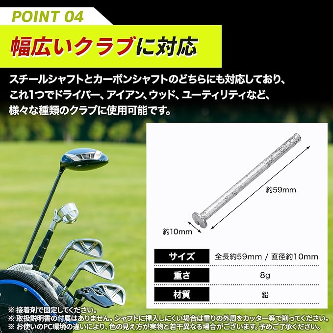【シャフト内に挿入可能】鉛テープや鉛シートとは異なり、このウェイトはゴルフクラブのシャフト内に直接挿入するタイプ。見た目を損なわず、より一体感のあるバランス調整が可能な重りです。