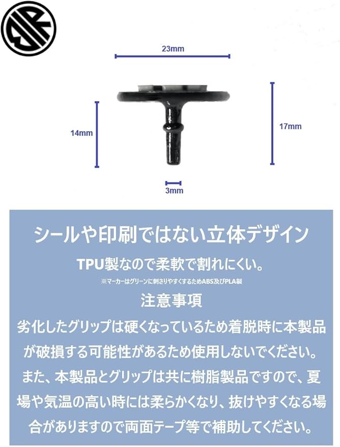 樹脂製品ですので直射日光の当たる場所での長期保管や高温の車内での保管は避けてください。変形や変色する場合があります。 夏場や気温の高い時にはグリップや本製品が柔らかくなる場合があり、グリップによってはショット時の衝撃などで本製品が脱落しやすくなる事があります。装着時にゆるいと感じた場合は両面テープ等で補強して頂くことをお勧めします。