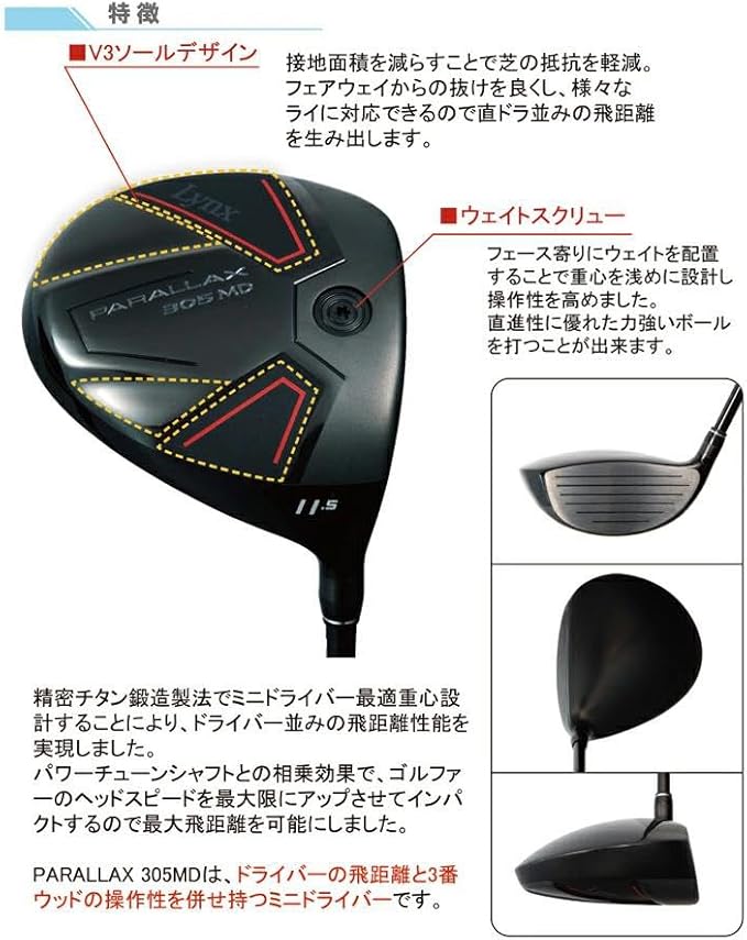PARALLAX 305MDは、ドライバーの飛距離と3番ウッドの操作性を併せ持つミニドライバーです。