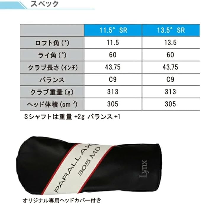 リンクス(LYNX) ゴルフ PARALLAX 305MD パララックス 305エムディー ミニドライバー ルール適合 ミニドラ 43.75インチ ロフト13.5 SRフレックス PARALLAX 305 MD WC+H/C 13.5 SR | KAZESHOP