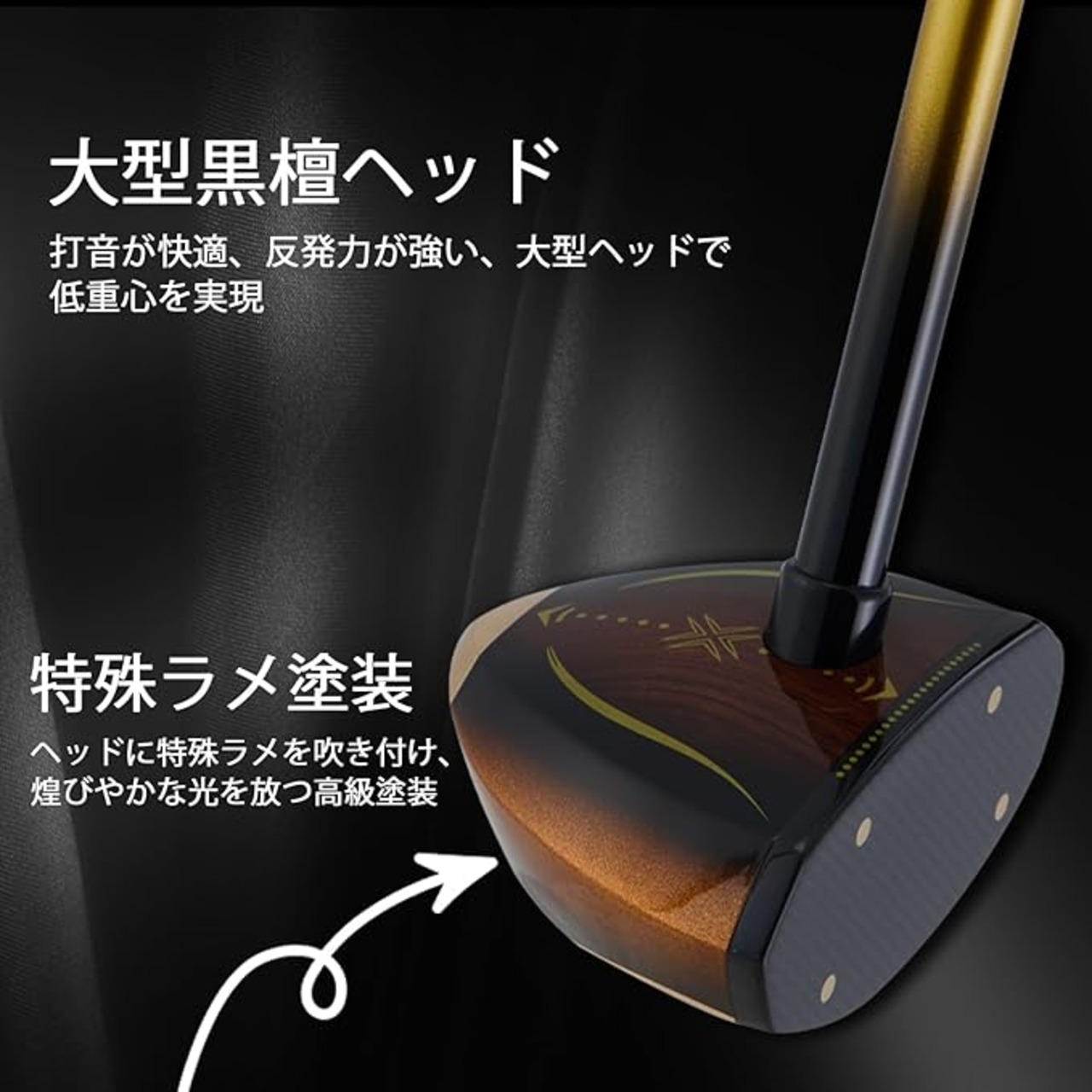 ヘッド素材:黒檀 + 真鍮 + カーボンファイバー シャフト素材:カーボン グリップ素材:ゴム
