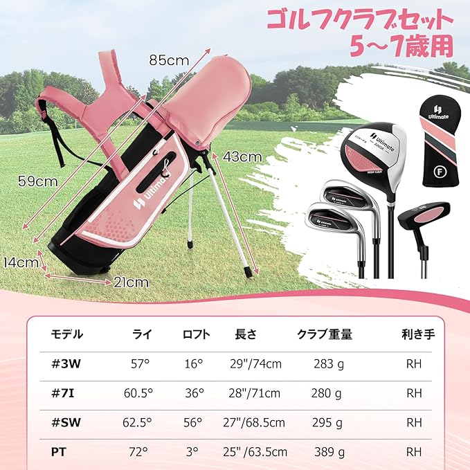 【キュートなピンク】ピンクのジュニアゴルフセットで、可愛らしさと楽しさを届けます。柔らかいピンクカラーが子供たちを引きつけ、ゴルフへの興味をかき立てます。女の子に人気のキュートなデザインで、ゴルフをもっと楽しく!