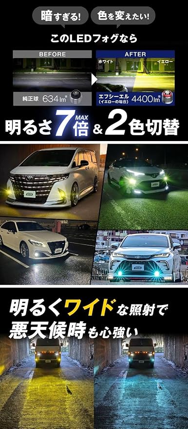 fcl.(エフシーエル) L1B フォグランプ led 新型 純正 交換用バルブ 2色切り替え 黄色 イエロー ホワイト フォグ 後付け 車検対応 メモリー機能 左右分 2個セット | KAZESHOP