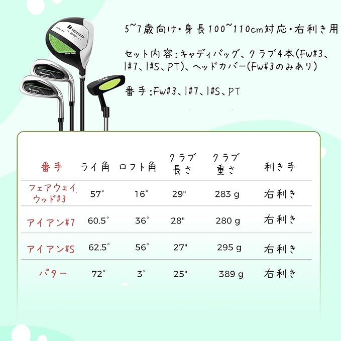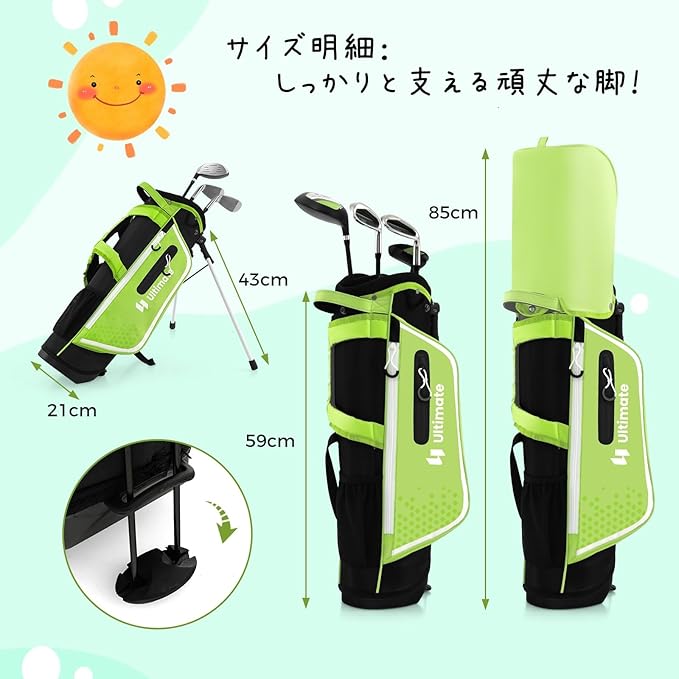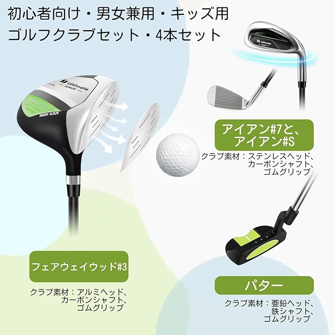 ジュニアゴルフクラブセット キッズゴルフクラブセット 4本セット 5~7歳向け 身長100~110cm対応 キャディバッグ付き 男女兼用 女の子 男の子 初心者向け 右利き用 キッズ用 ジュニア用 ブルー/ピンク/グリーン3色 | KAZESHOP