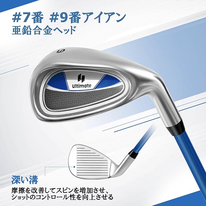 【クラブで目標達成】#3フェアウェイウッドは165ccの大容量合金ヘッドを採用。高速な打球と長距離飛距離を実現します。#7アイアンと#9アイアンは重心が低い設計で、コントロール性が高く、高弾道を実現。練習を重ねることで、子供たちは異なるクラブの使い方と打球技術を身につけることができます。
