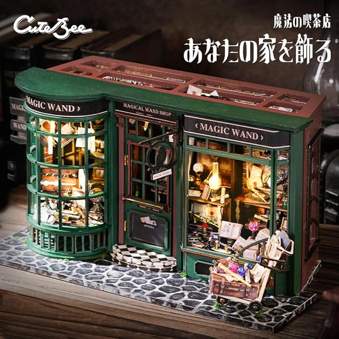 CuteBee-DIY ミニチュアハウス キット-ドールハウス キット-組み立てが簡単 該当する 初心者 ティーンエイジャー 手作りキット 大人向け 装飾 クリスマス・誕生日プレゼント LEDライト付き ダストカバー (魔法の喫茶店) | KAZESHOP