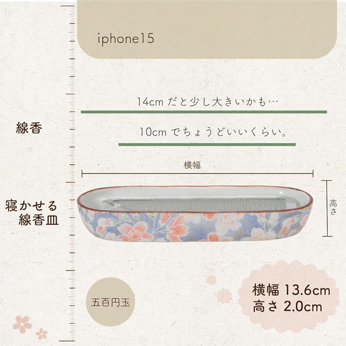 サンメニー 寝かせる 線香皿 本格 有田焼 お手入れ 簡単 日本製 インテリアに馴染む おしゃれ お 香 線香 焼香 インセンス 仏具 現代仏壇 お仏壇 天音 桃花 ブルー お供え お焼香 線香立て インセンスホルダー コンパクト 小さい 小物 幅5.3 長さ13.6 高さ2.0cm [Sunmany] | KAZESHOP