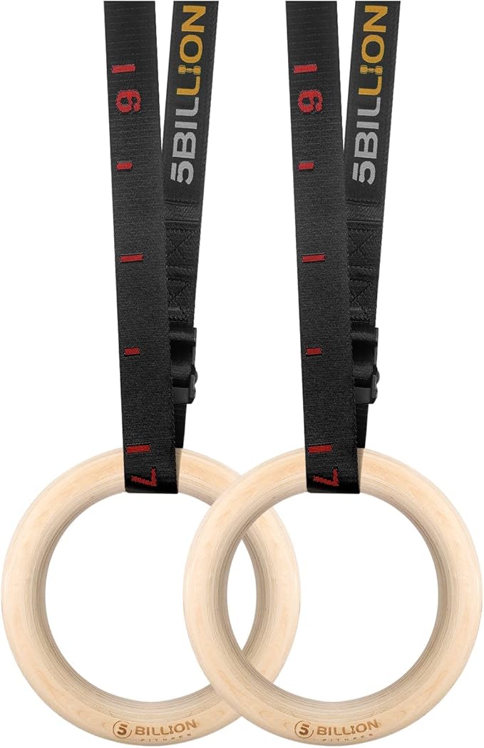 5BILLION 木製体操吊り輪 - オリンピック体操リング 調節可能な長いバックルのストラップ - 自宅のジム ・ フィットネスのためのトレーニング - あなたの筋肉のアップ、プルアップ ・ 筋力トレーニングに最適 | KAZESHOP