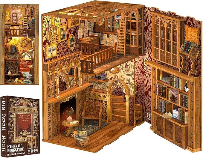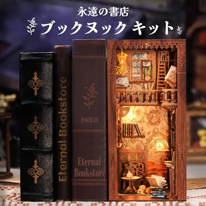 CuteBee-ブックヌック キット-ドールハウス-ブックヌックシリーズ-BookNook-DIY木製-永遠の書店-ドールハウスキット-本棚の装飾品 手作り木製ギフト 手作りキット 初心者 大人向け | KAZESHOP