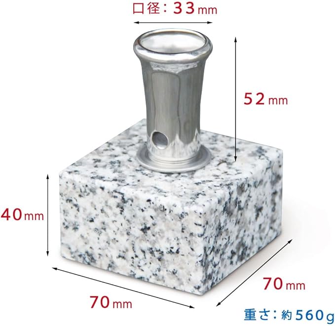 高さ9cm (ステンレス線香立て 直径3.3cm、高さ5cm 御影石台座 7cm 7cm 高4cm)