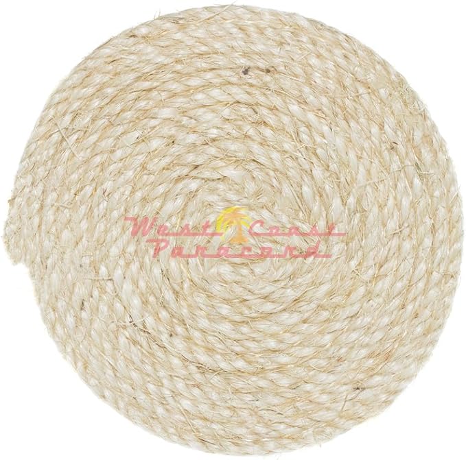直径6.3mm(1/4インチ)のWest Coast Paracord 天然100%サイザルロープは、猫の爪とぎポールやその他のペット用おもちゃに最適なロープです。サイザル麻の繊維で作られており、製造過程では化学薬品や油脂などの処理剤/加工剤は一切使われていません。猫の爪とぎポールに使用する場合は、高耐久性のホッチキスでロープを固定することが可能。同様に、強力な接着剤や熱接着剤を使うこともできます。このロープを、壁掛け、結束バンド、インテリア装飾などの他のプロジェクトに使いたい場合も、同じ方法で固定することができます。弊社のサイザルロープは強度と耐久性に優れ、若干の伸縮性も備わっていますので、さまざまなものに使うことができます。このサイザルロープは、長さ30.5m/100フィート、直径6.3mm(1/4インチ)です。 注意:ロープから臭いが発生する場合があります。 仕様: 直径 - メートル法表記 - 引張強度 - 安全な使用荷重 1/4インチ - 6.3mm - 190.5kg/420ポンド - 38.1kg/84ポンド商品は袋に入れてお届けします