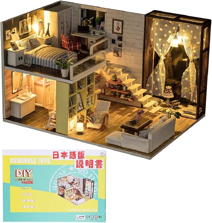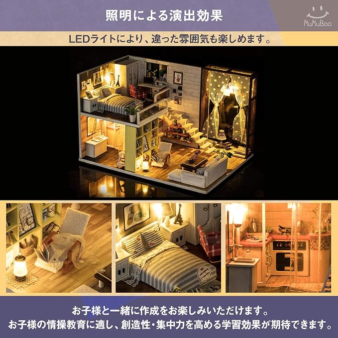 [MuMuBoo] ドールハウス 日本語説明書付 手作り ミニチュアキット ミニチュア家具キット DIY 木製 【 LEDライト オルゴール 防塵用ディスプレイカバー 付属 】 (CONTRACTED CITY) | KAZESHOP