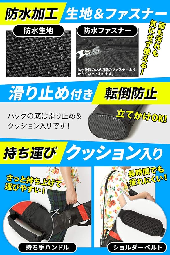 ✅【 防水加工&滑り止め 】大切なクラブを守るために防水生地と防水ファスナーを使用しました。突然の雨や水はね、泥汚れにも安心。ケース底部分は滑り止め生地を使用。壁やキャディバッグに立てかけても滑りにくく活躍すること間違いなし!