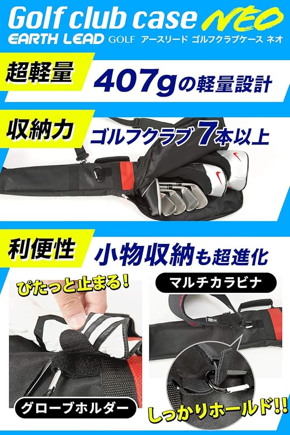 ✅【 超軽量・利便性抜群 】本体407gと軽量なのにゴルフクラブは7本以上収納できるタフさ。利便性を追求しマジックテープ式のグローブホルダーとサンバイザーをかけたり何でも使用できるカラビナ付。持ち手&ベルトにはクッション装備!