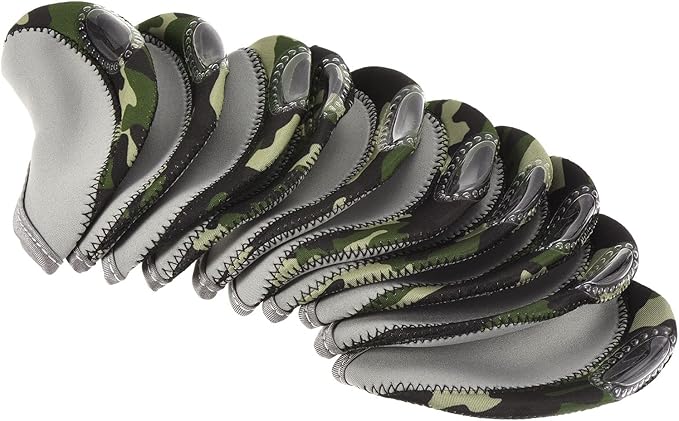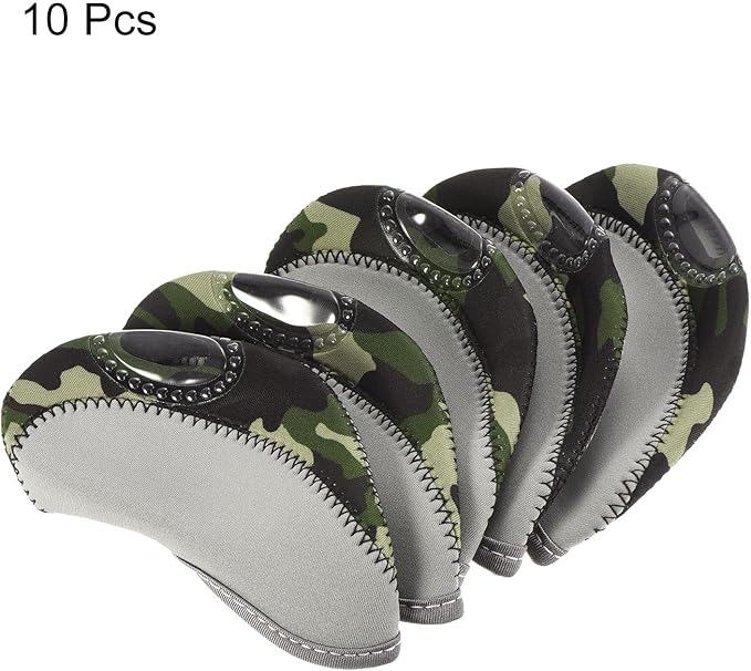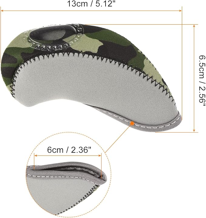 カラー:グレー、 カモフラージュ; 合計サイズ:13 x 6.5 cm(L x W); 開口部の長さ:6cm; パッキングリスト:10個 x ゴルフクラブアイアンヘッドカバー