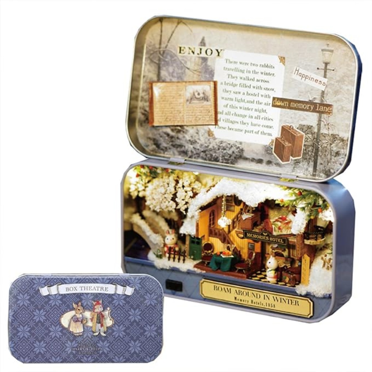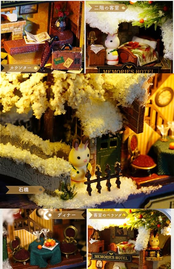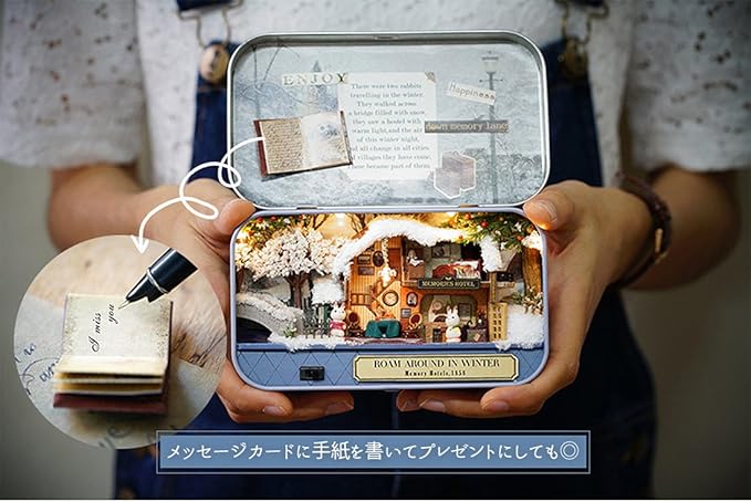 moin moin 【 日本語説明書 】 ドールハウス ミニチュア 手作りキット セット 小物入れで暮らすうさぎシリーズ 初心者 兎 ギフト 自由研究 知育 | LEDライト + スタンド 付属 (冬のお出かけ) | KAZESHOP
