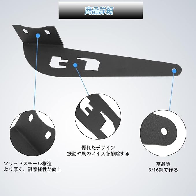 高品質の3/16鋼で作られ、耐摩耗性の防錆パウダーコートで覆われているため、最も過酷な条件で長年使用できます。空力設計で振動や風のノイズを排除しながら。 どんなに荒れた路面でも、ライトバーはしっかり固定でき、滑りにくくなっています。