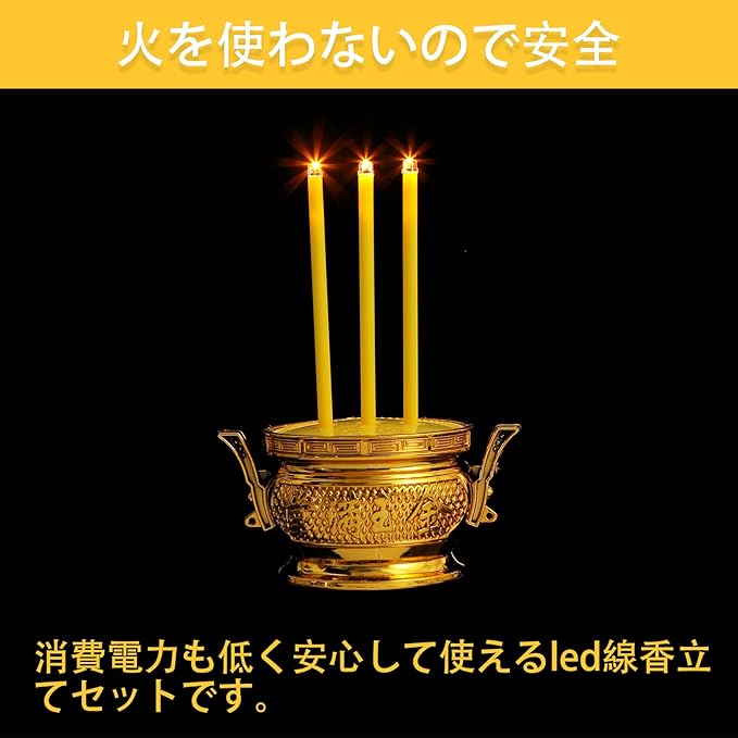 【装飾キャンドルスタンド】火を使わないので安全。消費電力も低く安心して使えるled線香立てセットです。