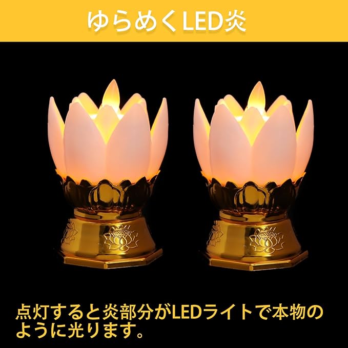 【シンプルかつ高級感のあるデザイン】模擬蓮灯と模擬香炉のセットで、長くご愛用いただけます。