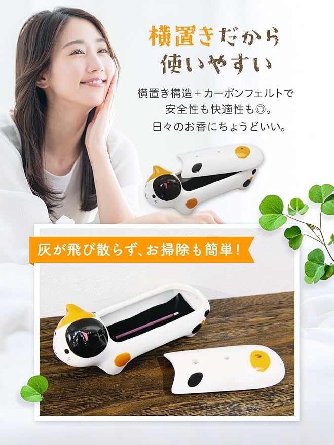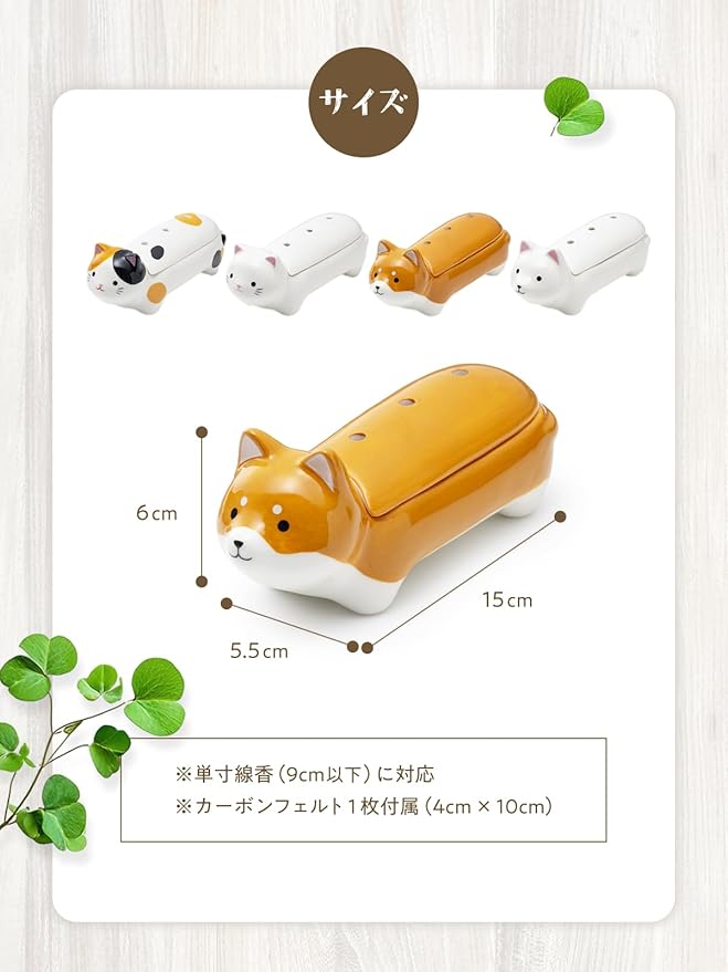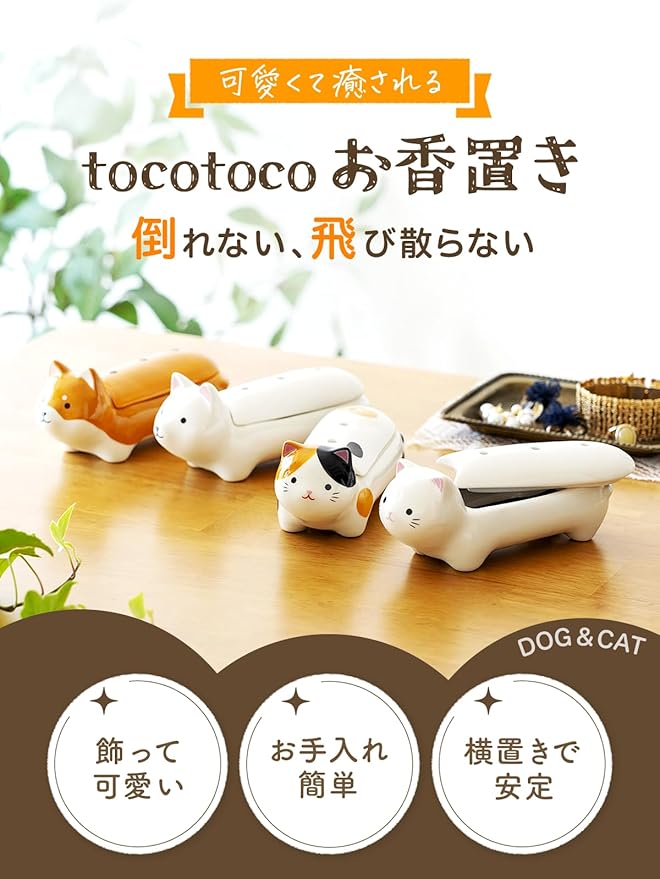 【使っていない時も可愛いオブジェに】 とことこ歩く猫や犬の姿がとても愛らしく、線香を焚いていないときもインテリアオブジェとしてお部屋に癒しを添えます。和室にも洋室にもなじみやすいナチュラルなデザインで、来客時の話題にもなるほどの可愛さです。