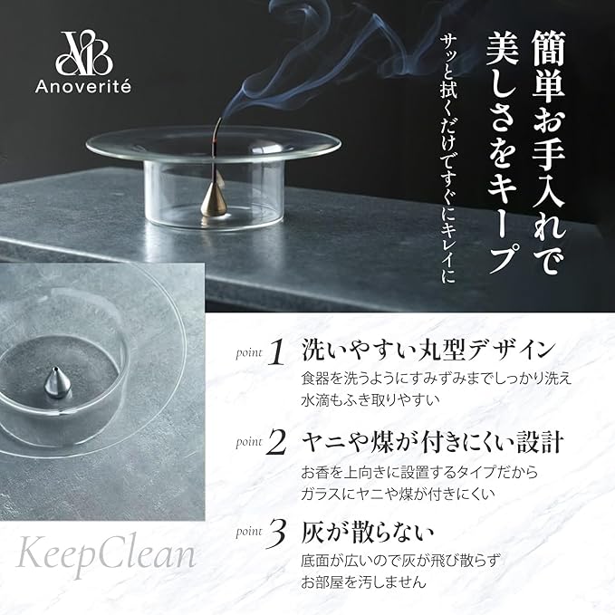【簡単お手入れ】 透明なガラス容器は水洗いが可能で、灰が飛び散らず清潔をキープ。お手入れも簡単で、毎日気持ちよくお使いいただけます。