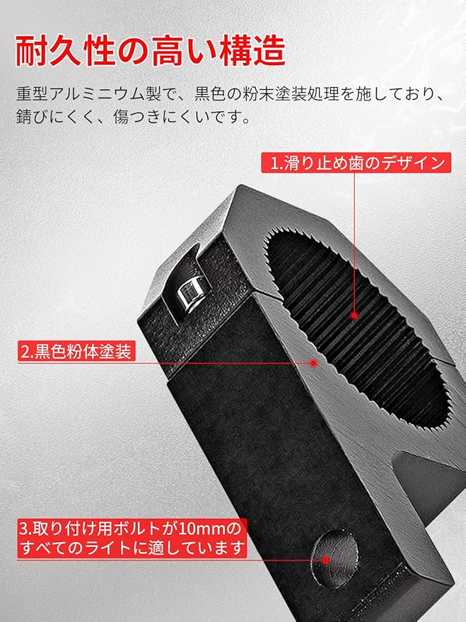 【広範な応用】 LED 作業灯、フォグランプ、補助灯、ライトバー、デッキライト、集魚灯、サーチライトなど、あらゆる種類の照明機器に対応した汎用取付金具です。錆びにくい素材と加工技術により、長期的な信頼性を保証します。