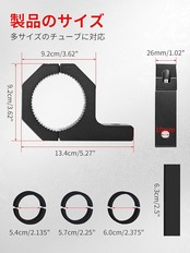 【商品仕様】 材質:高品質アルミ合金を採用し、軽量で丈夫な特性を備えています。 サイズ:管径 55~63mm のパイプに対応しており、幅広い用途に適用可能です。 取付方法:穴開け加工を必要とせず、簡単な取付作業で済みます。誰でも手軽に取り付けることができます。