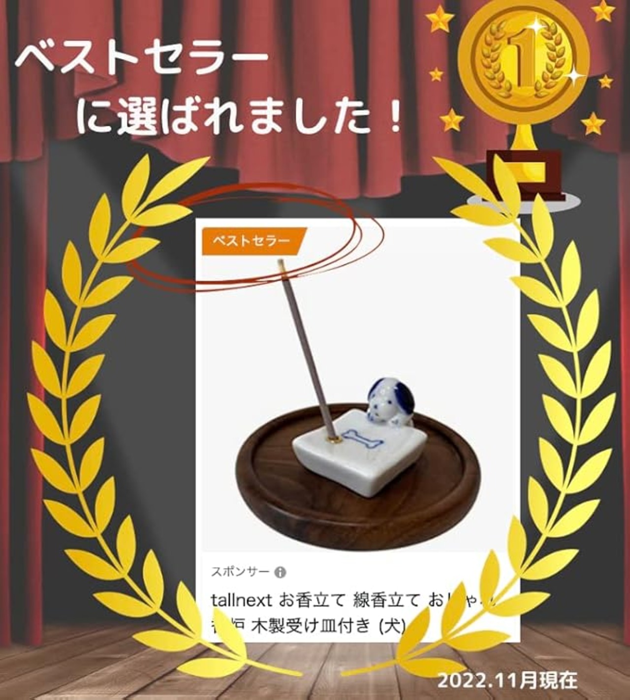 わんちゃん、ねこちゃんのお香立てです!天然木(胡桃の木)の受け皿付き!