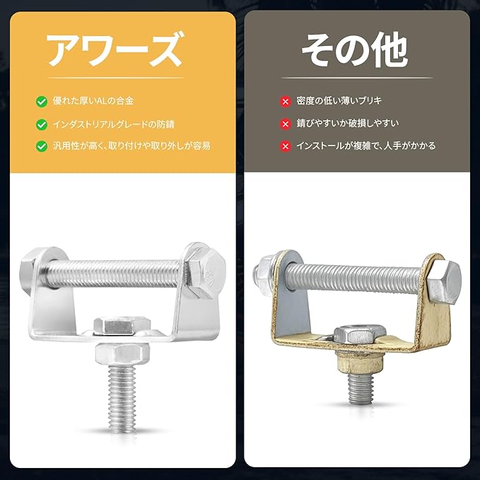材質:ブラケット本体の素材には鉄を採用しており、高い耐久性が備わっています。