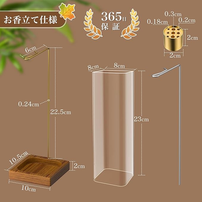 ❀【35cm以下の長香・短寸にも対応】こちらのインセンスホルダーの高さを大きく改良されましたので、市販の長めのお線香も折れなくて、直接ご利用することができました。ご愛用されるアポテーケ、ガーネッシュ、印度系の線香も対応できます。ガラスコップの口径も大きく設計され、酸素の不足による火