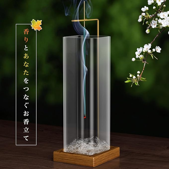 【灰がこぼれないと風で飛ばない]耐高温ガラスの設計でお香を焚くとき、瓶の中に溜まっていく煙の動きが幻想的でとても綺麗です。お香にありがちな、灰を周囲にまき散らしません。お香立の底部はお香皿が付いていますので、落ちた灰の清掃も便利、実用の線香立てです。デザインだけではなく機能性にも優れており、ぜひ一度お使ってみてください。