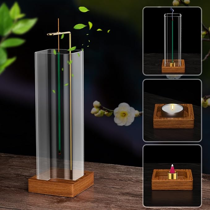 Holdm お香立て おしゃれ 線香立て ガラス 35cm長寸・中寸・短寸・コーン・線香・キャンドル使用可能なインセンスホルダー アロマスティック 癒やし香炉 (ウォールナット) | KAZESHOP