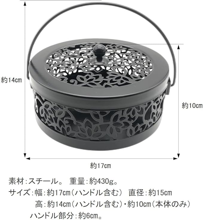 ※本品は蚊取線香を入れる容器です。線香は付属しておりません。手作りのロートアイアン製品の為、わずかな歪み、へこみ、擦れなどが見られる場合もございますが、初期不良には該当しませんので、ご理解の程よろしくお願いいたします。