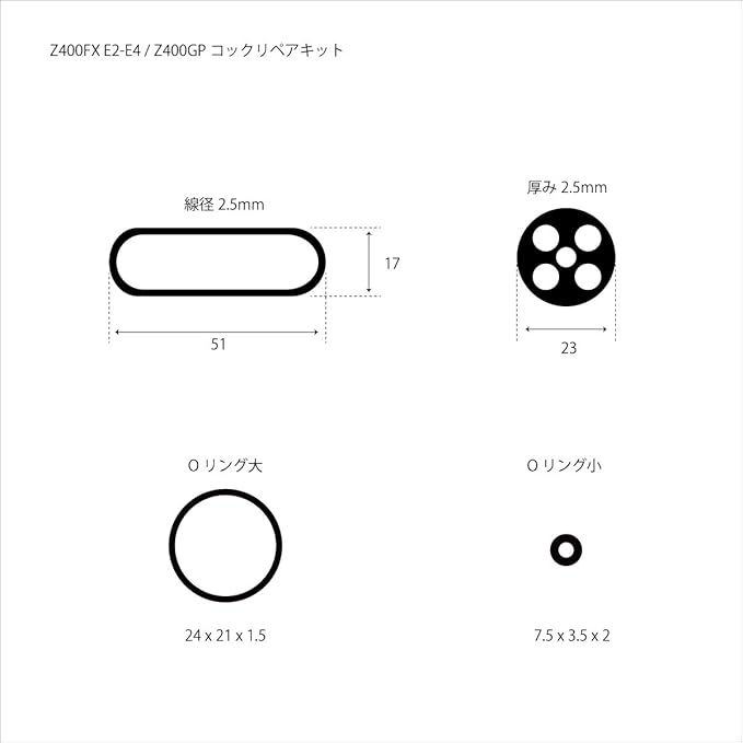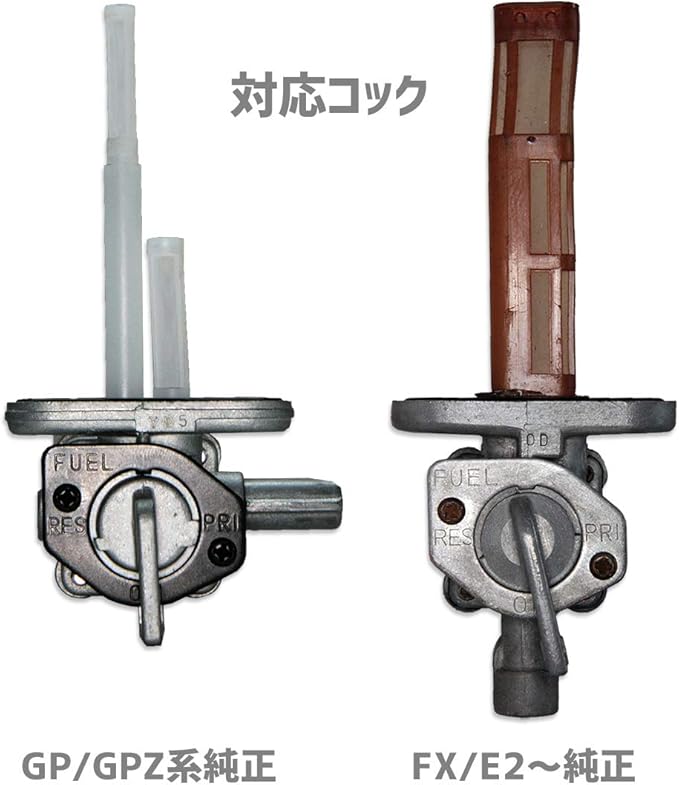 Z400FX/E2以降のフューエルコックの消耗部品セットです。 Z400GP/GPZ400のコックでも使用可能です(画像参照)。 画像にはありませんがM6ナイロンワッシャーも2枚付属します。